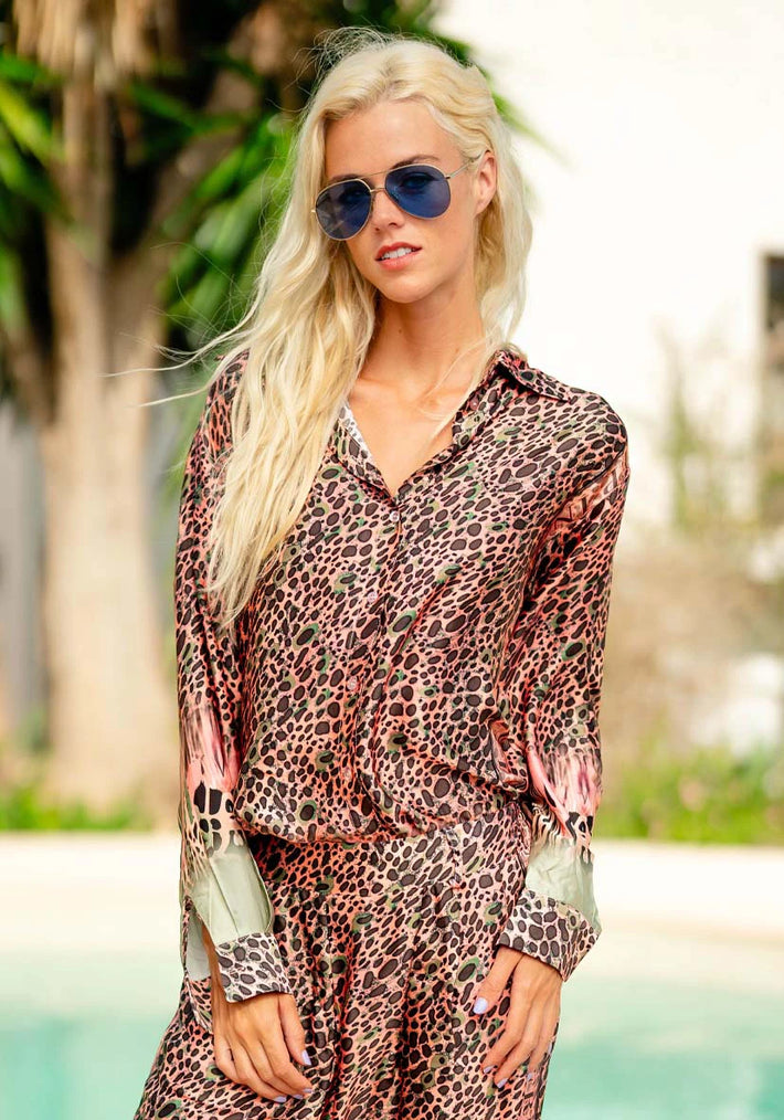 BELLA DAHL SPLIT BACK BUTTON DOWN SHIRT SKYLINE SPRAY WASH