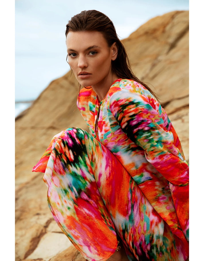 BELLA DAHL SPLIT BACK BUTTON DOWN SHIRT SKYLINE SPRAY WASH -