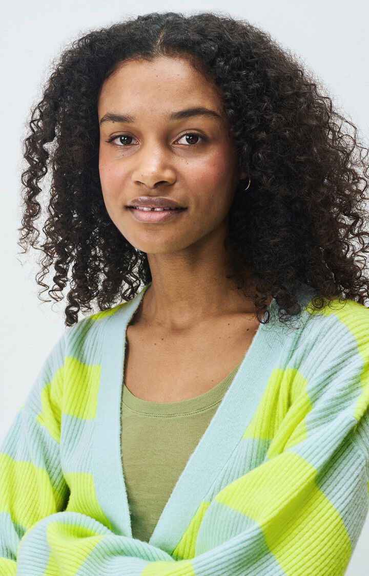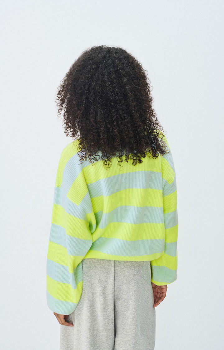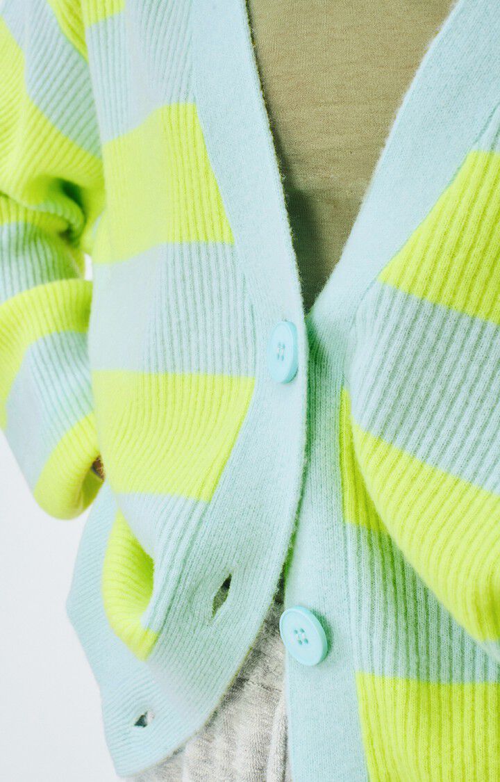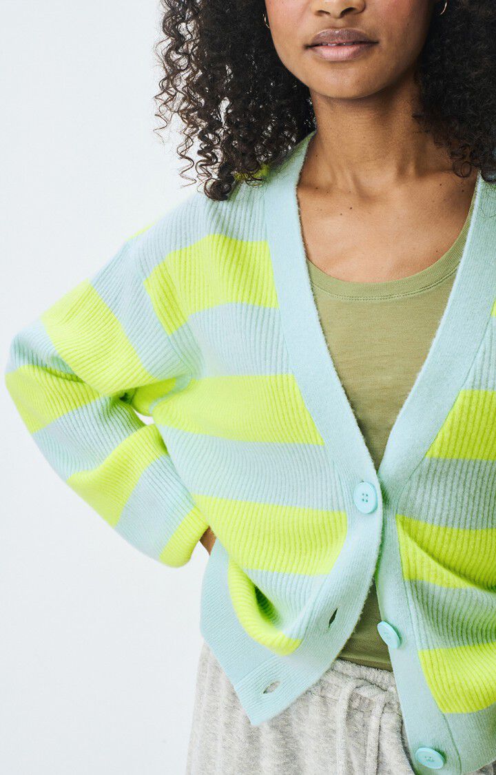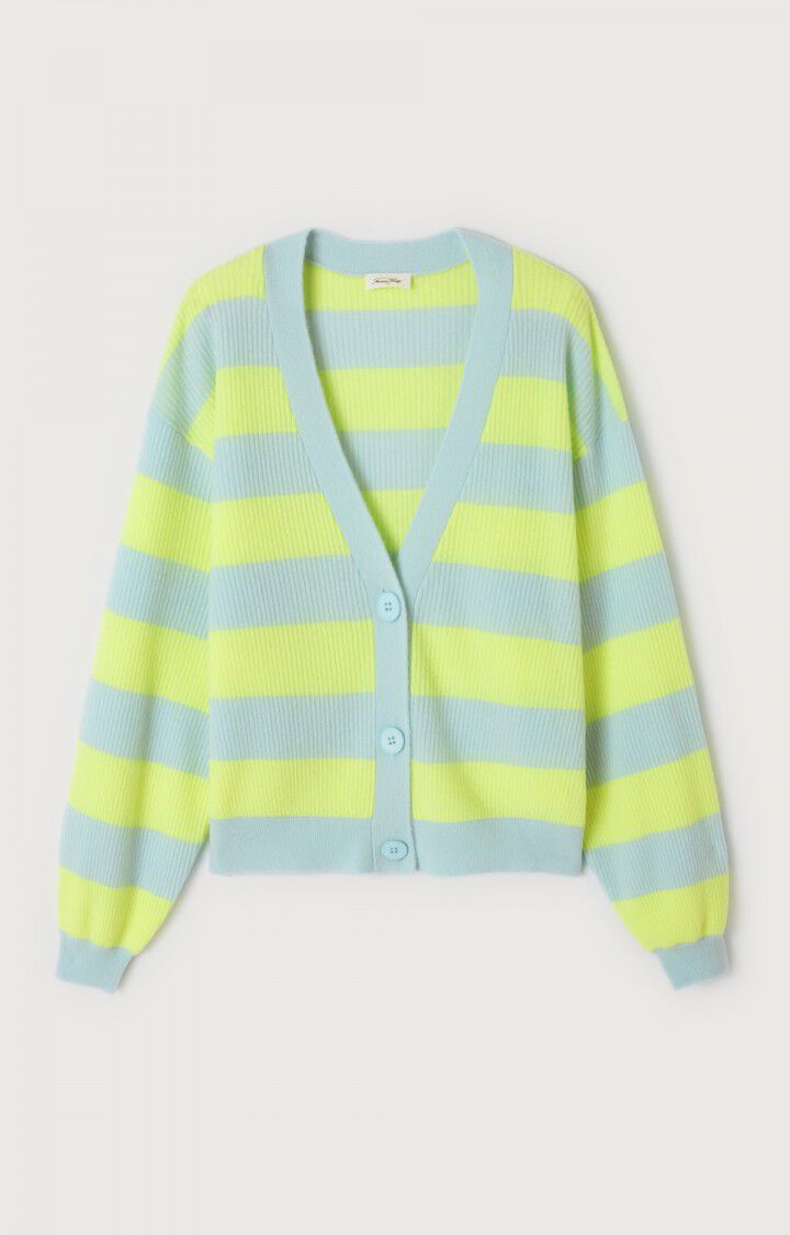 AMERICAN VINTAGE CARDIGAN RAXOW - NEON YELLOW CRYSTAL STRIPED