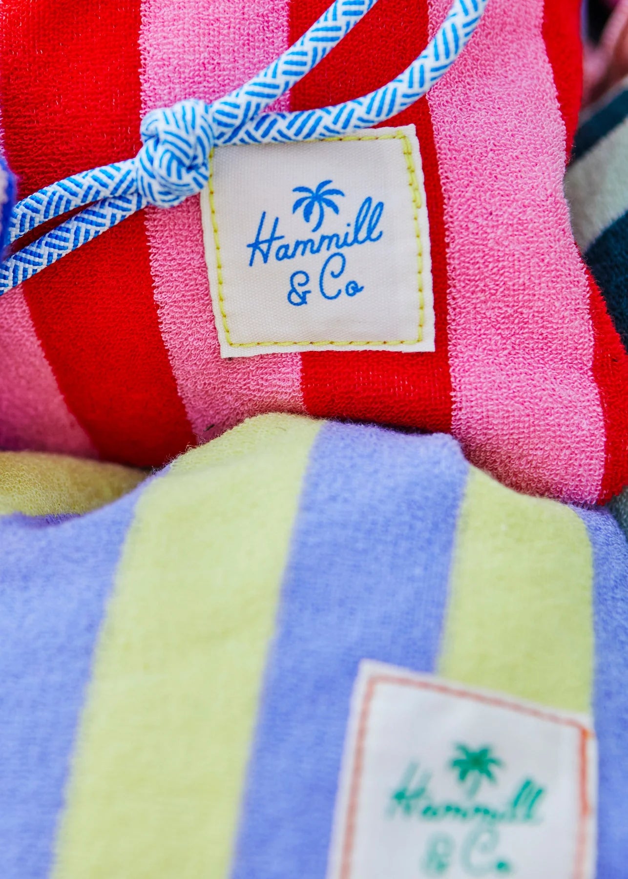 HAMMILL AND CO CARNIVALE STRIPE DRAWCORD BAG MAUVE/LEMON
