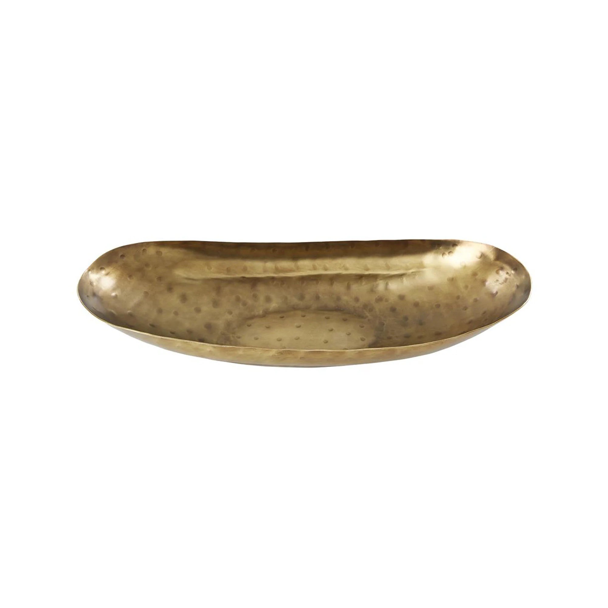 The Runi Dish is a long oval shaped aluminium dish with an embossed antique brass finish. This dish has been handcrafted & polished using traditional skills. Imperfections & variances are a part of the unique character & are celebrated.