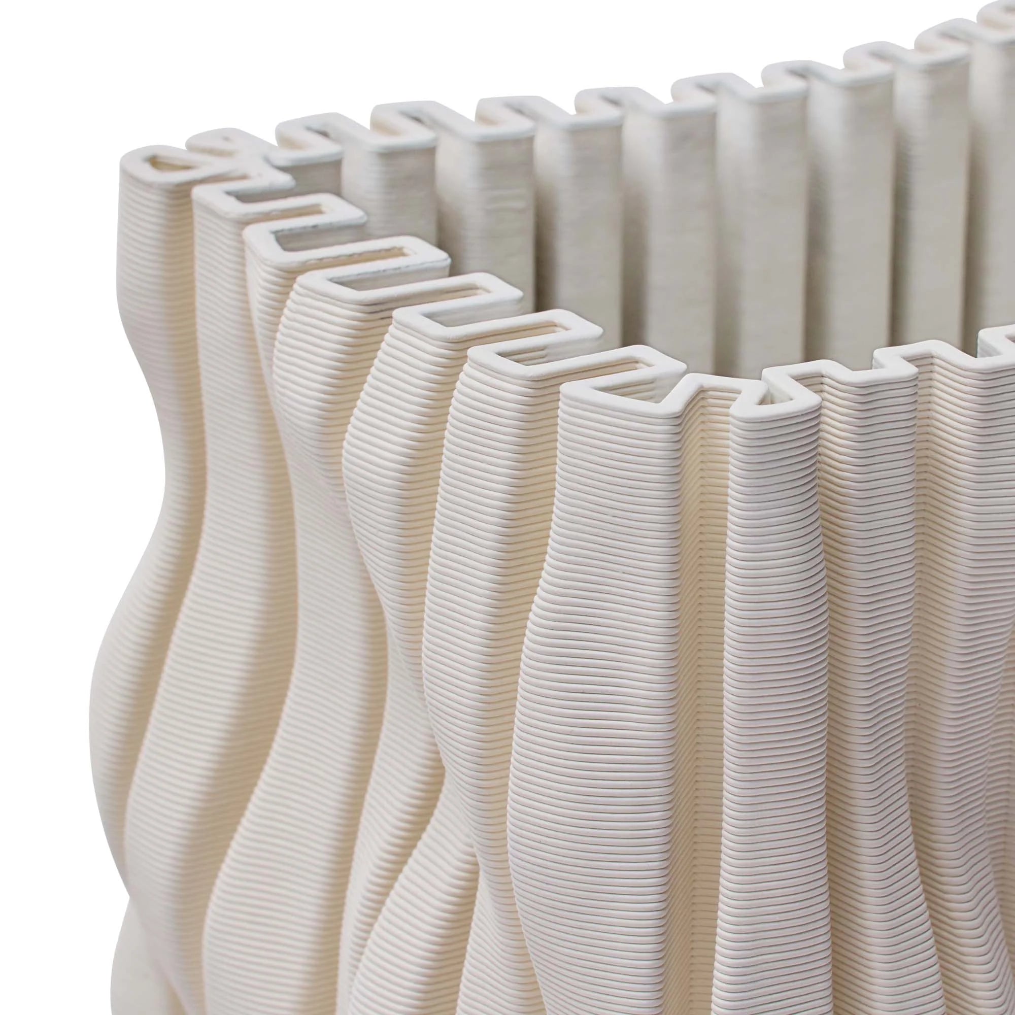 The Yuki Vase is 3D-printed using 100% Kaolin ceramic, each piece meticulously crafted blending artistry with functionality. This stunning & unique piece is not only visually striking but evokes the feeling of a gallery piece. Designed by Horgans and manufactured through an intricate 8-step process, these vases exemplify innovation and precision. To learn more about the process, please see the product download. While the Yuki vase features a waterproof interior lining, complete waterproofing cannot be guaranteed due to the artisanal nature. We recommend thorough testing and ongoing monitoring when using them with water to ensure optimal performance and longevity.