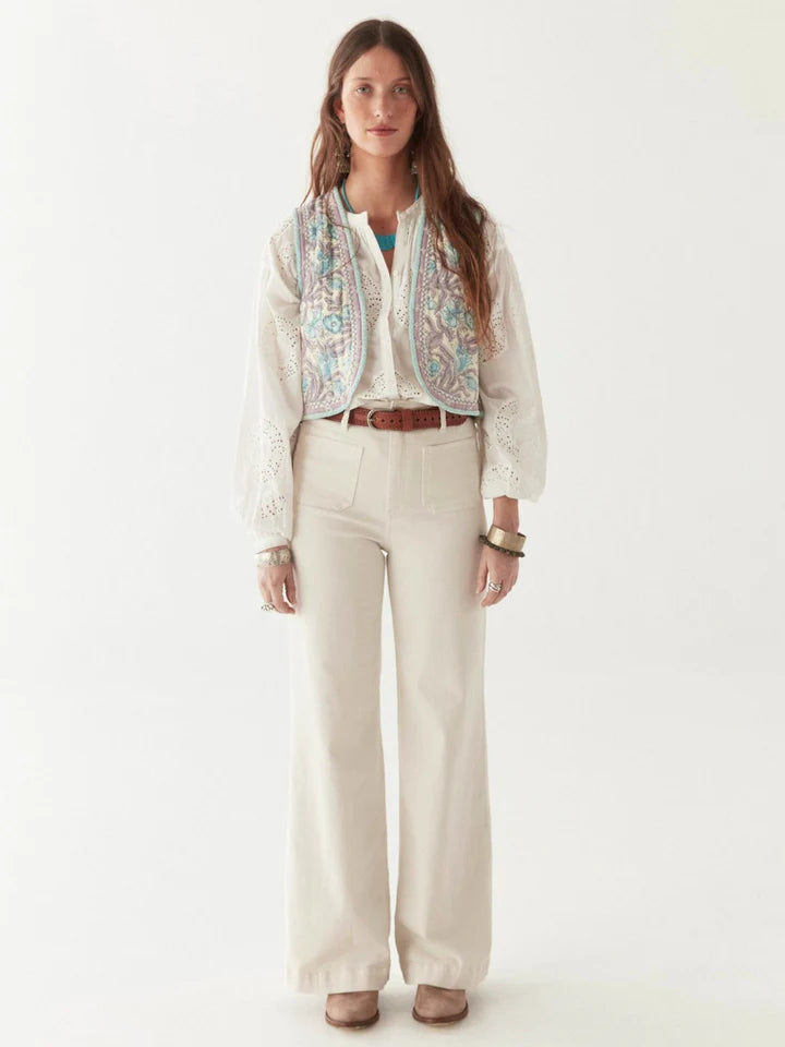 Designed for versatility, this blouse can be worn loose for a relaxed feel or tucked into high-waisted denim for a more polished silhouette. Paired here with Edna Ecru Pant and the Devendra Belt, it's an ode to timeless elegance with a modern bohemian spirit.
