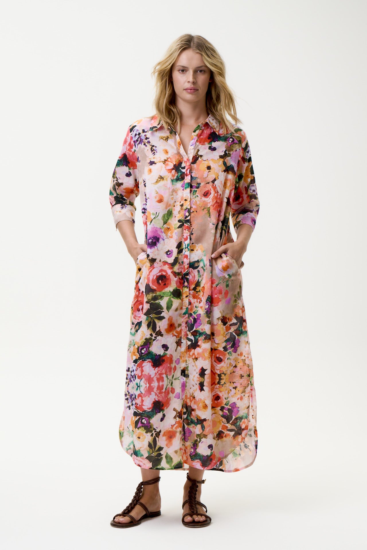 Made from 100% washed cotton, the Daisy is a laid-back button-down shirt dress featuring a flowing full-length cut, a soft collar, and practical side pockets. Designed for easy movement and all-day comfort, it’s ideal for relaxed holiday dressing.